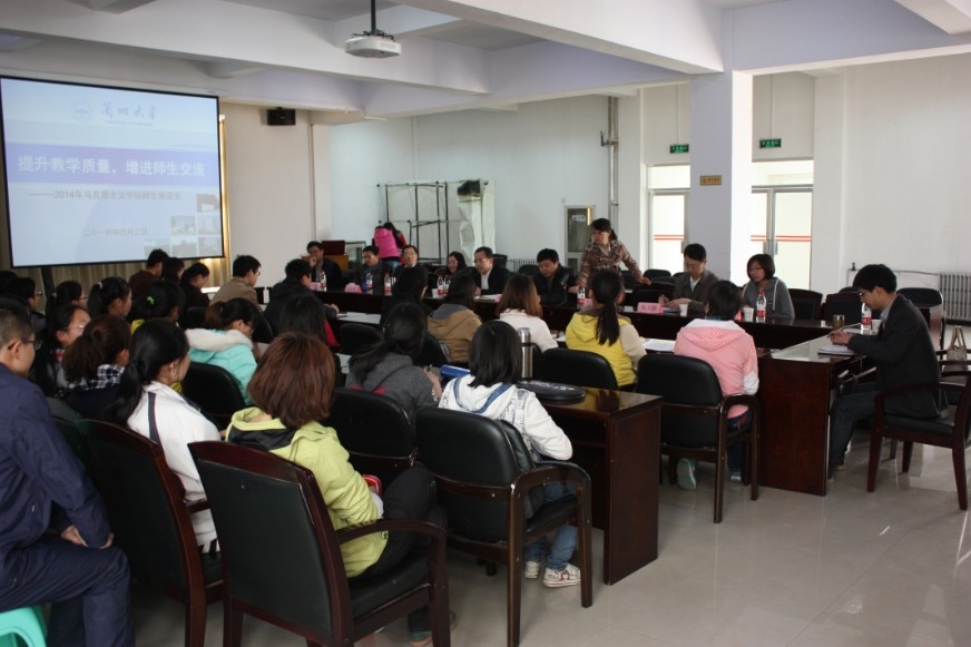 针对这些问题。参会教师们从自己的学习和教学实践出发,向同学们坦率的发表了自己的观点。马克思主义原理研究所副所长杨宏伟老师从端正自己的学习态度,改变对自身的认识,充分利用身边的信息资源自主学习,抛却应试教育的思维模式等方面发表了自己的看法;马克思主义中国化研究所万秀丽老师围绕“认识自我使命、转变学习思维、学会管理自我、完成自我飞跃”四个方面对大学学习和生活进行了全方位的解析,期望同学们认识自我,发展自我,超越自我;思想政治教育研究所副所长马忠老师热情地将自己在大学期间学习感受与同学们分享,认为思政专业的同学基础好,但需要进一步拓宽知识面、增强主动性、提高针对性,主动加强与老师联系,积极发现问题,研究问题,解决问题;朱大鹏老师、宫长瑞老师分别从自身学习、生活和工作经历出发,敦促同学们充分发挥自身的特长和兴趣爱好,明确目标,制定规划,在扎扎实实的实践中努力实现自己的梦想。此外,学工组成员、班主任老师、办公室老师就积极为学生学习提供服务提出了各种想法和建议。