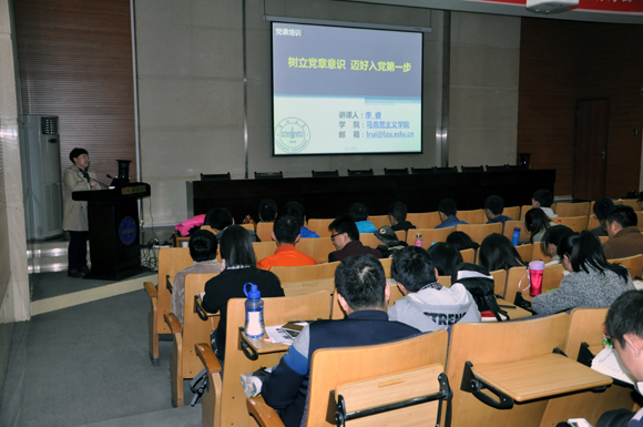 李睿老师结合“两学一做”学习教育,对《中国共产党章程》、《中国共产党廉洁自律准则》和《中国共产党纪律处分条例》内容及意义作了详细解读,她敦促入党积极分子切实做到学习党章、遵守党章、维护党章;深刻认识党章的内涵与实质,熟知牢记党的性质、指导思想、任务纲领和党员的权利义务;坚定理想信念,对党绝对忠诚,时时处处严格要求自己,真正做到在思想上和行动上“入党”;切实贯彻党全心全意为人民服务的根本宗旨,争取早日加入党组织,成为一名讲政治、有信念,讲规矩、有纪律,讲道德、有品行,讲奉献、有作为的合格党员。