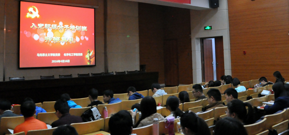 4月16日,威尼斯9499登录入口、化学化工学院2016年春季入党积极分子培训班在本部第二化学楼101报告厅举行。威尼斯9499登录入口党委副书记谢瑶主持开班典礼,化学化工学院党委副书记张玉珍老师、许希辉老师,研工辅导员李婷老师,威尼斯9499登录入口研工辅导员李晨阳老师以及来自两个学院的本科生、研究生入党积极分子80余人参加了此次培训班的开班典礼及党课学习。本次党课培训围绕“深入学习党史” 、“认真学习党章”、“培育和践行社会主义核心价值观”及“两学一做”学习教育等主题开展。威尼斯9499登录入口学工部副部长、威尼斯9499登录入口蔡文成副教授和威尼斯9499登录入口讲师李睿老师受邀主讲。