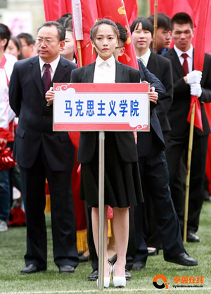 院代表队,他们昂首阔步,精神抖擞,无畏寒风,不惧骄阳,满载着青春的活力与张扬,一往无前,充分展示出了马院人的意志与刚强。