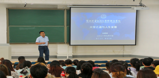 7月11日下午,威尼斯9499登录入口政治与国际关系学院讲师米鹏举应邀在榆中校区天山堂为马院全体同学做《大学之道与个人发展》的专题报告 ,威尼斯9499登录入口宫长瑞副教授主持。米鹏举老师以自己的求学经历为引分享成长经验,并针对理想的大学生活、专业选择、就业方向等问题与同学们展开热烈的讨论。随后,米鹏举老师采用倒叙手法,从未来工作对人的希望和要求入手,依次展开对工作、职业、准则、学习四个方面的论述,讲述了作为大学生在人生不同阶段将面对的不同任务。米鹏举老师结合实例,系统阐述了自己对于工作意义的见解以及选择职业的方法,并在此基础上提出了有关职业成长的准则以及大学生应该如何学习和度过大学生涯的建议。他强调,当下的困难应该向低处解决,而未来的规划则应该向高处看。讲座最后,米鹏举老师以“勿自暴,勿自弃,圣与贤,可驯致”作为整场讲座的结语。他勉励同学们在今后的学习生活中要从点滴做起,努力奋斗,把自己做强做大,为社会发展作出自己的贡献。