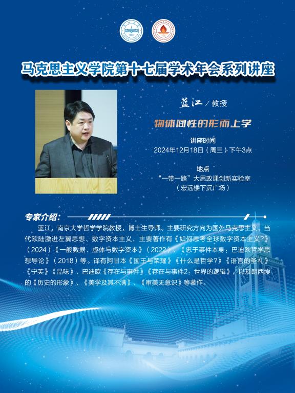 蓝江,南京大学哲学学院教授,博士生导师。主要研究方向为国外马克思主义、当代欧陆激进左翼思想、数字资本主义,主要著作有《如何思考全球数字资本主义?》(2024)《一般数据、虚体与数字资本》(2022)、《忠于事件本身:巴迪欧哲学思想导论》(2018)等。译有阿甘本《国王与荣耀》《什么是哲学?》《语言的圣礼》《宁芙》《品味》、巴迪欧《存在与事件》《存在与事件2:世界的逻辑》,以及朗西埃的《历史的形象》、《美学及其不满》、《审美无意识》等著作。