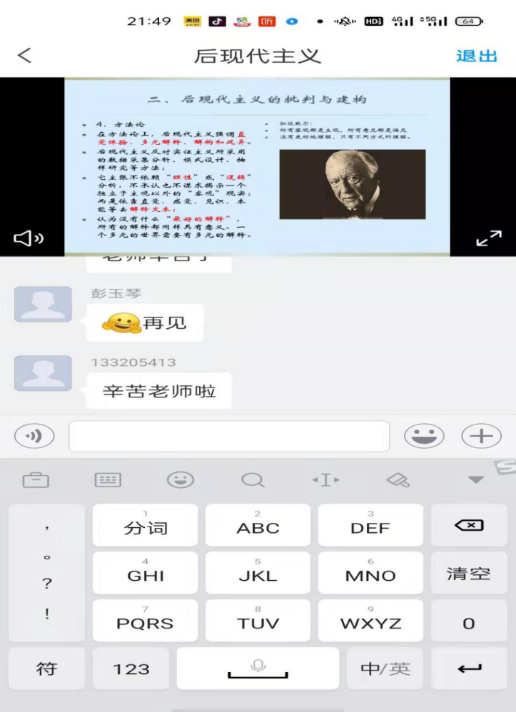 疫情来了,网上授课对于我这位教育战线的“老兵”来讲是一个全新的挑战,“学习通”、“腾讯会议”这是什么“鬼”?我从来没有在这上面上过课。但是,教师的责任感促使我必须无条件的学会在网上授课,为此,我积极向有关专家请教、向熟悉平台技术的青年教师请教,甚至向我的硕士博士们请教。世上无难事,只要肯登攀。经过一周多的学习、摸索、实践,我逐渐掌握了网上授课的技术(当然还有一些有待完善之处),而且还发现网上授课的优势:上课更加专注了,思路更加清晰了,讲解更加透彻了,师生交流更加及时…… 。我不仅适应了网上授课,而且喜欢上了网上授课。