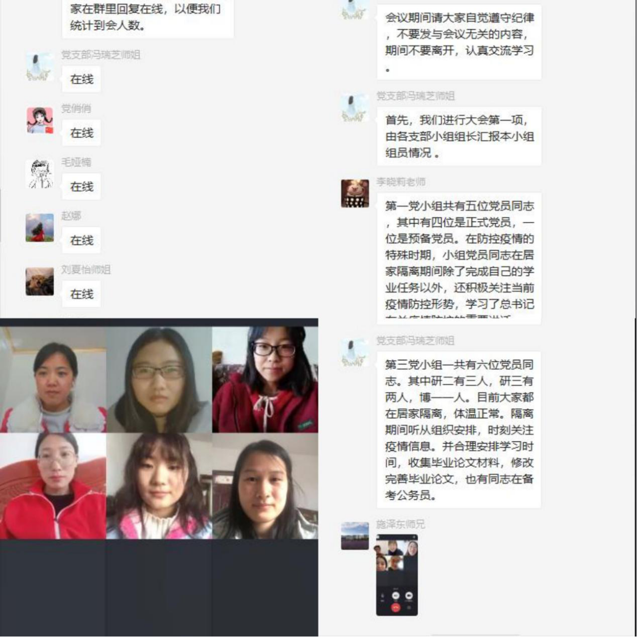 活动开始,各党小组组长首先汇报组内党员的健康状况和在家隔离期间的基本学习和生活状况。