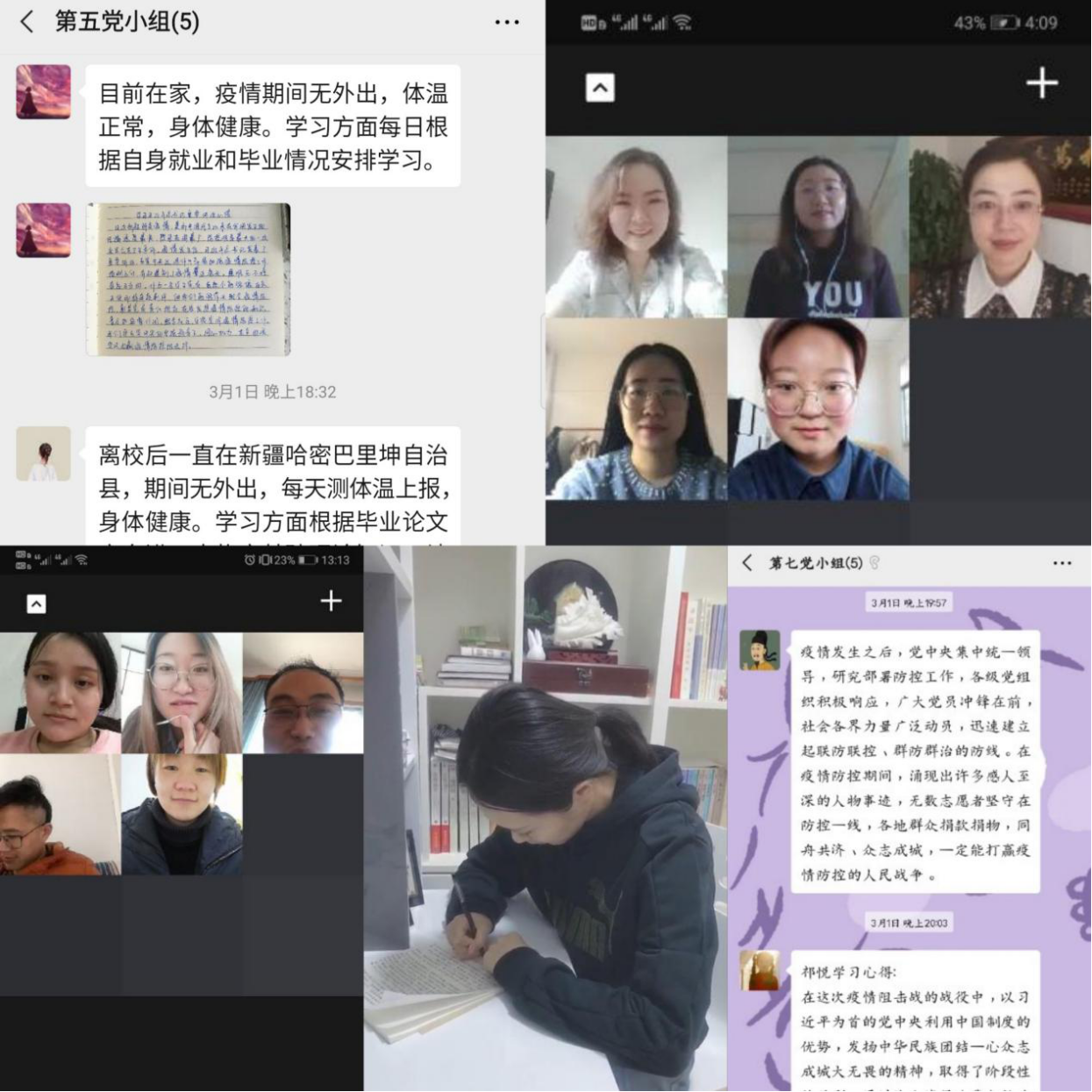 近期,思想政治教育研究所研究生党支部一直密切关注支部党员的身体状况和疫情发展动态,组织支部党员进行党中央关于疫情防控决策部署和习近平总书记重要讲话、重要指示精神的学习,在特殊时期成立了线上党小组,安排支部委员分别负责各党小组的学习、工作安排、沟通与交流。3月1日,党支部以线上视频会议的形式召开了支委会,学习了习近平总书记关于疫情防控的系列重要讲话,讨论了线上主题党日活动的内容安排和基本流程,并对接下来党支部如何继续开展党员活动做了规划。