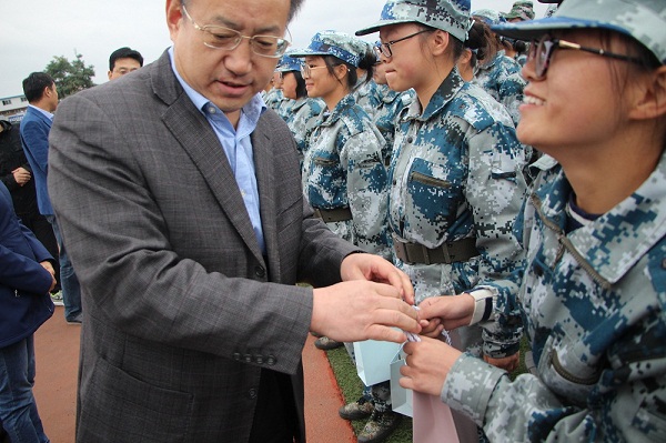 党委书记蔡文成鼓励新生们要上好“大学第一课”,保持强健的体魄,养成良好的习惯,规划好自己的大学生活,发扬“掉皮掉肉不掉队,流血流汗不流泪”的精神,将军训中收获到的宝贵精神继续保持下去,以饱满的精神状态投入到未来的学习和生活中。