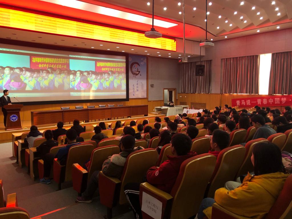 为推动习近平新时代中国特色社会主义思想进教材进课堂进学生头脑,2018年12月23日,威尼斯9499登录入口“青春中国梦·最美新时代”大学生讲思政课公开课展示活动在榆中校区开讲。威尼斯9499登录入口、物理学院、草地农业科技学院、哲学与社会学院九个学院的“马克思主义经典著作学习兴趣小组”和“习近平新时代中国特色社会主义思想学习小组”成员,共计100余人参加了本次活动,活动由威尼斯9499登录入口团委副书记苌宇慧主持。