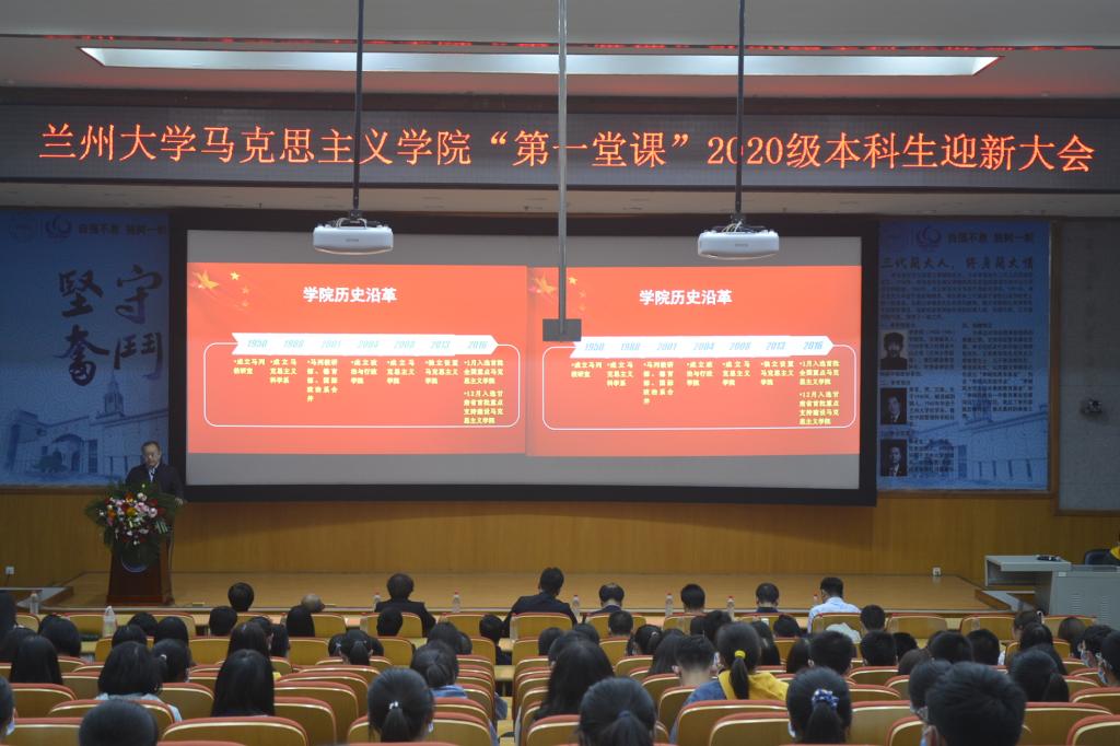 9月13日,威尼斯9499登录入口“第一堂课”2020级本科生迎新大会在榆中校区天山堂C302举行。学院党委书记蔡文成,院长张新平,副院长蒙慧、杨宏伟、郭文琦,副处级组织员张聪闪,学院党委委员、工会主席王彦涛,教师代表谢亚洲、夏淼、宫长瑞、刘继华、蒋海蛟、李晓莉、袁婷、张宽、赵洪良,2020级马克思主义理论类班主任刘栋、顾超,教学秘书刘翠柏、张欢,本科生辅导员苌宇慧、贾玉杰,109名2020级本科生及部分新生家长参加大会。会议由学院党委副书记宋涛主持。