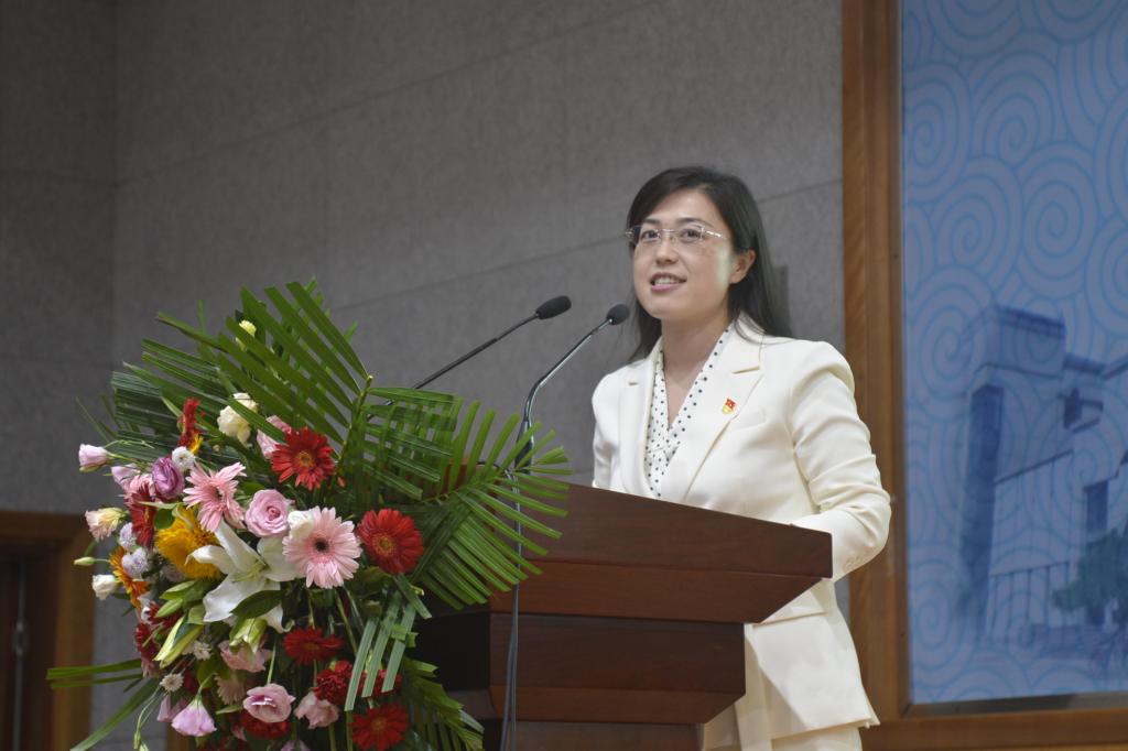 甘肃省高校青年教师教学竞赛一等奖获得者李晓莉作为青年教师代表发言。她从“成长”和“信仰”两个关键词出发,寄语新生大学生活是一个过程,收到录取通知书是一瞬间的事,而终身学习是一辈子的事。