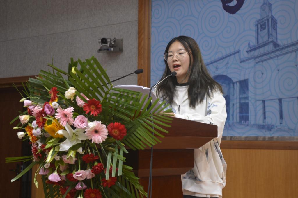 2020级本科生严梓嫣代表新生发言,她向所有忙于开展新学期准备工作的老师和学长学姐们表示了感谢,并从规则、平衡和奋斗的角度呼吁全体新生把握大学时光,树立远大目标并矢志奋斗。
