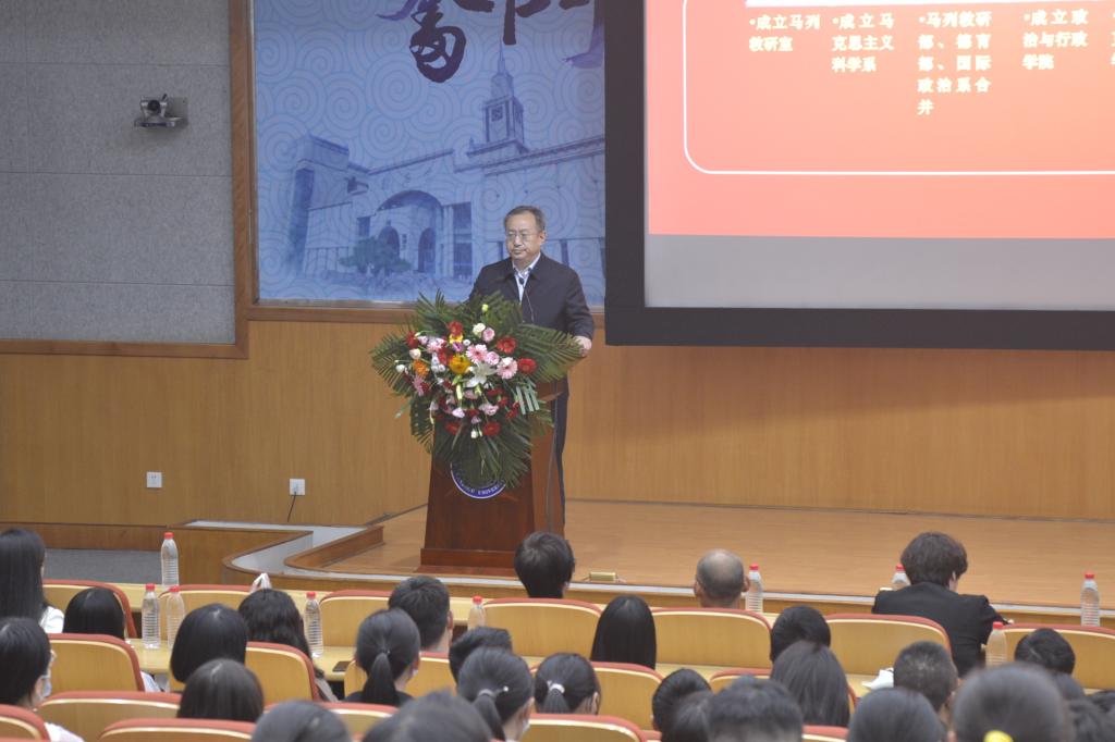 马克思主义发展史研究所所长、全国优秀教师王维平教授作为教师代表发言。他从一般的社会科学的研究内容和马克思主义及其思政教育的研究内容的区别出发,重点强调马克思主义及其思政教育是直面现实的,它就是研究如何在认识世界的同时更好地改造世界,是站在劳动人民立场上,为最广大人民的利益而抗争的科学。他说,研究和学习的马克思主义不是封闭的孤立的马克思主义,而是立体的马克思主义,即要学习马克思恩格斯站过的巨人肩膀,站在巨人肩膀上的马克思恩格斯,还有现在马克思恩格斯巨人肩膀上的马克思主义继承发展者的当代世界,特别是中国化的马克思主义。