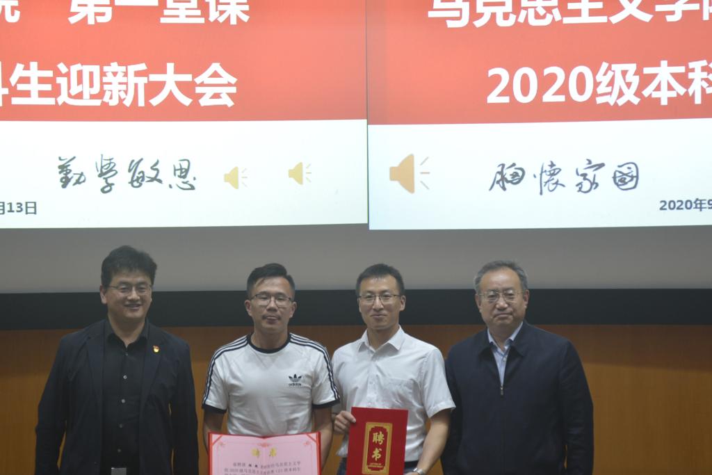 会上,蔡文成、张新平向2020级新生班主任颁发聘书。