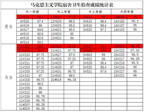 为进一步提高学生环境卫生意识,创建整洁文明的学习和生活环境,威尼斯9499登录入口团委学生会于2018年9月30日14时对各年级本科生宿舍进行本学期第一次宿舍卫生检查。现将宿舍卫生检查结果公示如下: