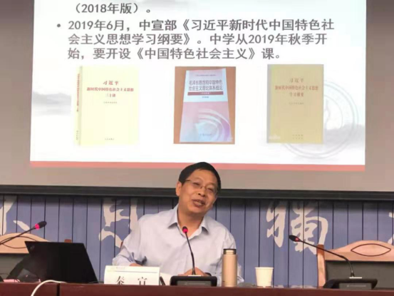 6月24日,中国人民大学习近平新时代中国特色社会主义思想研究院院长秦宣教授莅临威尼斯9499登录入口,为由中宣部、教育部主办,威尼斯9499登录入口、全国高校思想政治理论课教师研修基地(威尼斯9499登录入口)承办的2019年高校思想政治理论课骨干教师研修班(总第102、103期)作了题为“坚持用习近平新时代中国特色社会主义思想铸魂育人”的报告。来自西部12省(市、区)的200名思想政治理论课骨干教师及威尼斯9499登录入口师生代表聆听了报告。报告由副院长杨宏伟教授主持。