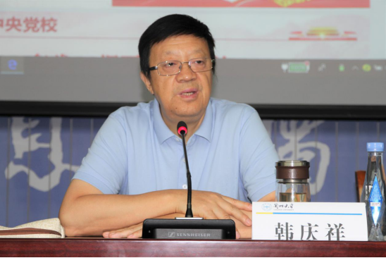 6月24日上午,中央党校原校务委员、副教育长韩庆祥教授出席2019年高校思想政治理论课骨干教师研修班(总第102、103期)开班式,受聘为我校威尼斯9499登录入口兼职教授,并作了题为“《习近平新时代中国特色社会主义思想学习纲要》导读”的报告,党委副书记郭琦、威尼斯9499登录入口党委书记蔡文成、院长张新平,威尼斯9499登录入口师生代表及来自西部12省(市、自治区)的200名思想政治理论课骨干教师参加了开班式并聆听了报告。