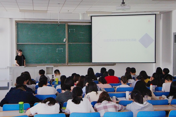 2016级硕士研究生王婉君结合亲身经历向在座本科生全面介绍了学校在研究生奖助政策与其他院校相比的优势。同时以学院研究生会主席的身份向各位同学展示了丰富多彩的研究生活动,诚挚邀请大家加入马院研究生团队。