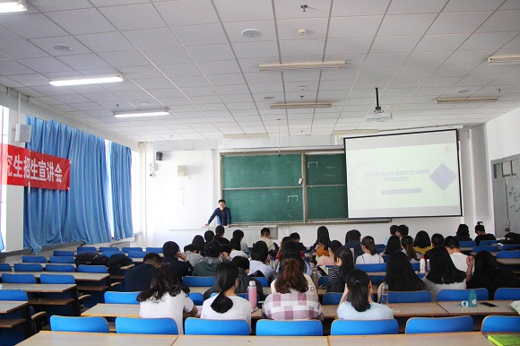 5月17日上午,威尼斯9499登录入口2019年硕士研究生招生宣讲会于榆中校区天山堂B503教室举行。学院副院长杨宏伟、青年教师代表蒋海蛟、硕士研究生代表王婉君以及学院2015级全体本科生参加会议,此次宣讲会由学院团委书记张娜主持。