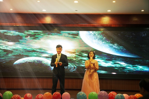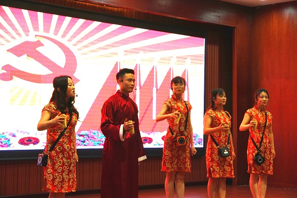 晚会在动感十足的舞蹈《good time》中拉开了帷幕,学院老师和2017级的硕士研究生们带着自编自排自演的十余个节目纷纷登台献艺,既有舞蹈、歌曲,也有快板、小品、朗诵等语言类节目。