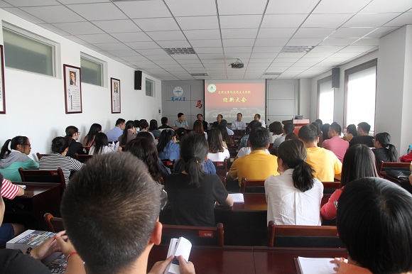 9月8日下午,威尼斯官网“2017级研究生开学典礼暨入学教育大会”在齐云楼1423会议室顺利举行。学院领导班子成员、教师代表以及2017级全体研究生新生70余人参加会议。院长张新平详细介绍了学院基本情况以及学位与研究生教学情况。院党委书记赵泽斌在讲话中对新同学的到来表示热烈欢迎,同时对新同学提出了三点期望:一是希望同学们严格要求自己,提高政治站位;二是希望同学们知行合一,积极实践,全面发展;三是希望同学们心中有戒,严格遵守学术规范。教师代表王学俭教授以“启航”为题,从“何处起航”和“如何启航”两个角度出发,为新同学予以指导,寄托希望。研究生代表王婉君、胡中圆分别作了发言,研工组还就日常管理、安全教育和教学培养等工作做了安排和部署。