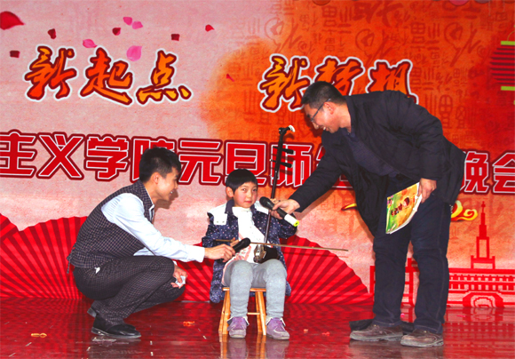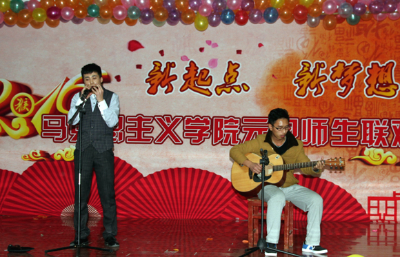 热情洋溢的开场舞《No Madonna》拉开了晚会的帷幕。搞笑配音《Go Die吧!双十一》对当下热点话题“网购”作了幽默风趣的调侃,引得全场阵阵大笑;“黄金搭档”李睿、赵雨星两位老师,八年之后再度联手《平沙落雁》,用古琴和书法唯美地表现出中国古典艺术之美;走秀节目《T-Show》优雅动感,展现出2015级新同学们青春活泼、时尚靓丽的风姿;婀娜多姿、曼妙美艳的舞蹈《阿拉伯之夜》将现场观众带向了一个充满着异域风情的神秘国度;马原菲小嘉宾带来的《二胡连奏》为晚会平添出一份童真和美好;老师们的献歌《三套车》《滚滚长江东逝水》《花儿民谣》《心中的玫瑰》热情饱满、悠扬动听,向全体师生送上了新年最美好的祝愿,将整场晚会推向高潮;《春天里的心跳》《天空之城》《大城市小人物》《黄四姐》《梁祝歪传》等精彩绝伦的歌舞小品表演以及轻松欢乐的师生游戏互动使得整场晚会精彩连连、高潮不断。晚会在藏族歌曲《鹰翔》旷远悠扬的旋律中圆满落下帷幕。