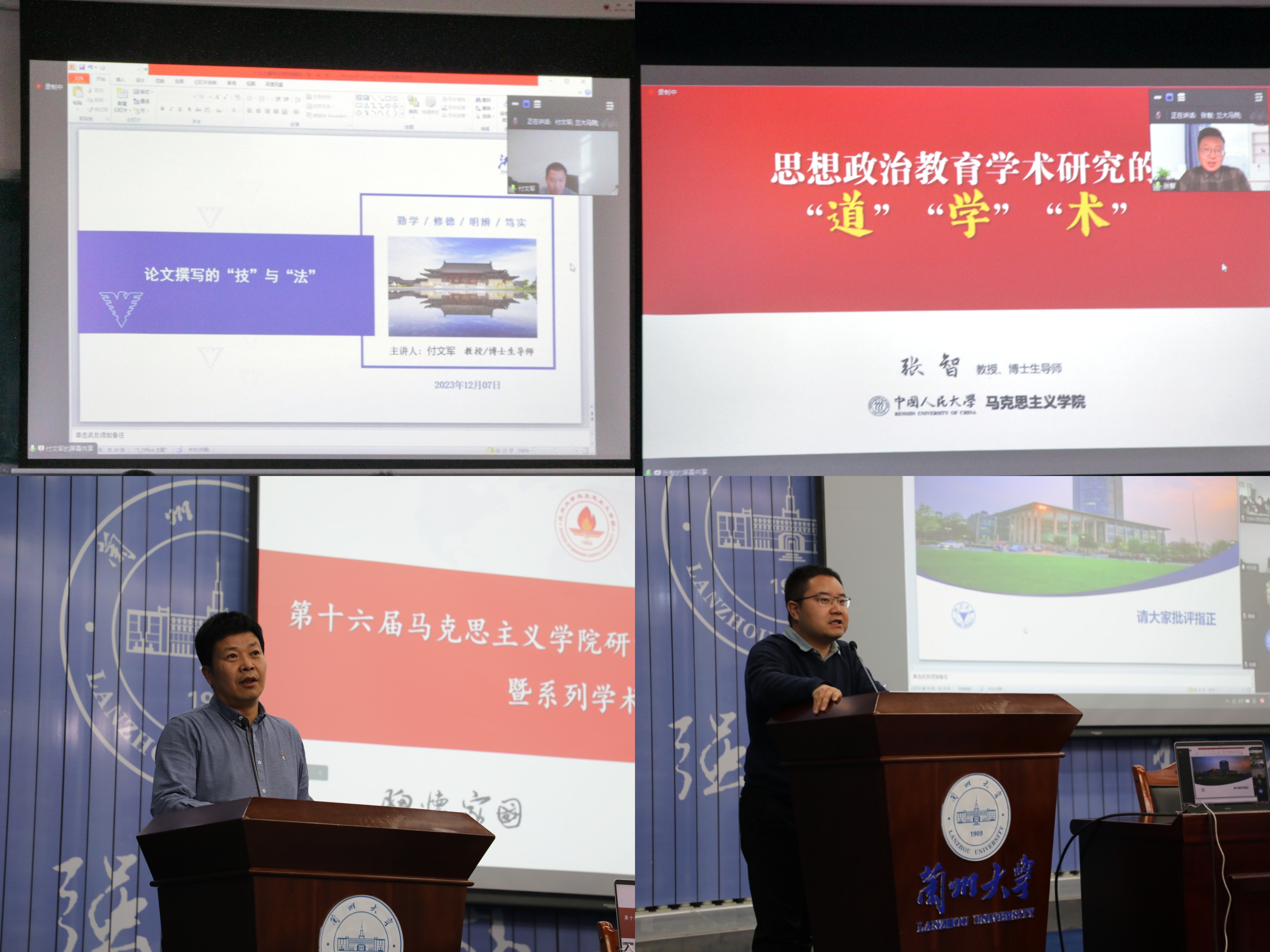 张智教授以“思想政治教育学术研究的‘道’‘学’‘术’”为题,提出构建思想政治教育学科自主知识体系的重要性,强调学术研究务必夯实学科理论基础把握思想政治教育研究的时效性和时代性,并从实践视角出发阐明思想政治教育应坚持教研结合。同时,张智教授还对思想政治教育的前沿问题进行分析,以宏观与微观的视角指出其中潜藏的风险挑战。张智教授鼓励同学们在做学术的过程中,要学会乐在其中,要培养一个研究者应有的特质和心态,准确理解和把握思想政治教育学术研究的基本特点,多方面吸纳中肯建议,把学术论文做扎实、做深入。