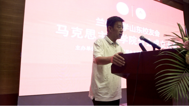 戚金波代表学校表达了对山东首个学院分会成立的祝贺,并介绍了学校校友工作、基金工作、校庆工作等方面的进展,呼吁广大校友心系母校,为母校发展建言献策。