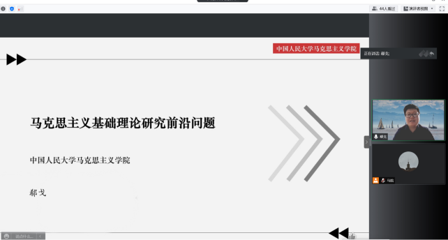 讲座中,郗戈教授从“基础理论研究的重大领域和主要方向、基础理论研究的前沿问题和基础理论研习方式”三个方面深入讲解了马克思主义基础理论研究的基本原则和方法,深入讲解了“源头”和“潮头”、阐释性研究和激活式研究、理论与原著、“为人”和“为学”等重要关系,使同学们对马克思主义基础理论研究有了更加深刻的理解和认识,对培养同学们的理论思维具有重要意义。